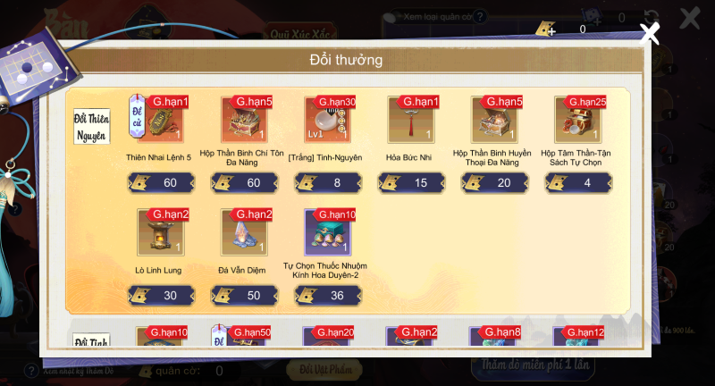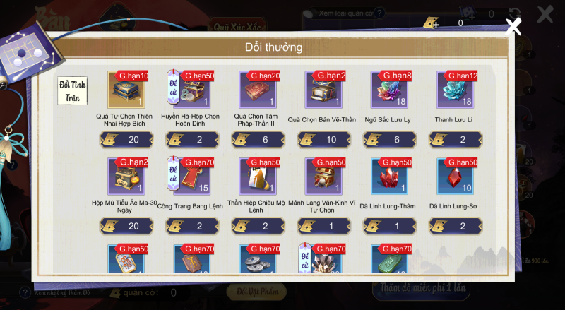 • Gói nạp từ sự kiện Bàn Cờ sẽ không cộng dồn tích lũy vàocác sự kiện hoặc tính năng khác.