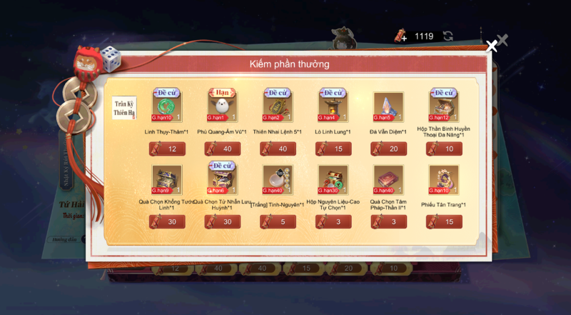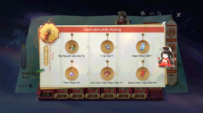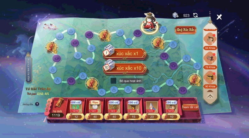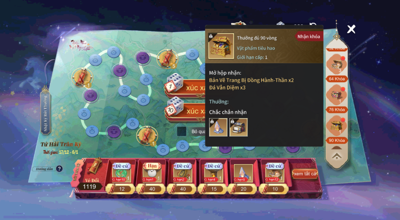- Số vòng tối đa mỗi tài khoản có thể thám hiểm Tứ Hải Trân Kỳ là 130 vòng, các Thiếu Hiệp cần nắm rõ để tránh lãng phí Xúc Xắc.