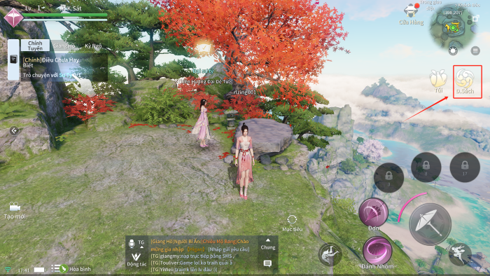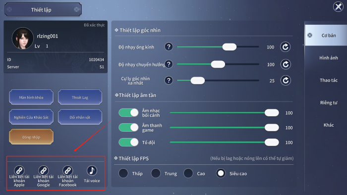• Bước 1: Thiếu hiệp có thể mở tính năng Liên kết tài khoản trong giao diện thiết lập bằng cách nhấp vào D.Sách.
